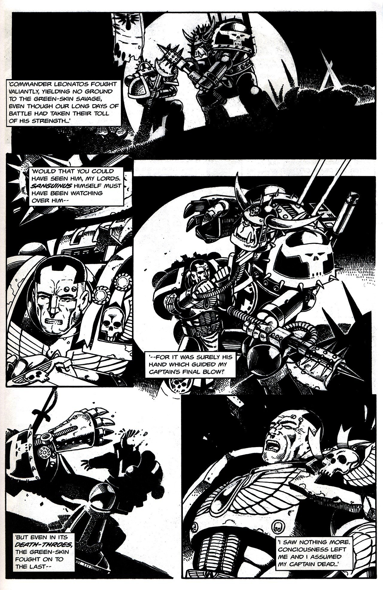 Even after being impaled on a sword, an Ork nearly kills a Space Marine in its death throesBQ